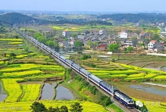 列车经过云南罗平时,可以好好欣赏一下油菜花海