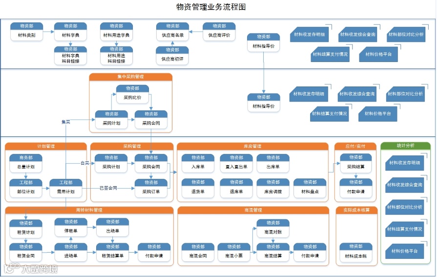 建立并规范物资管理业务体系,包括计划、合同、库房、结算、付款等管理,提升项目物资管理规范化,降低多项目管控风险,同时,通过物联网、大数据等智慧工地系统,实现项目物资过程动态化、精细化以及可追溯的管理目标。