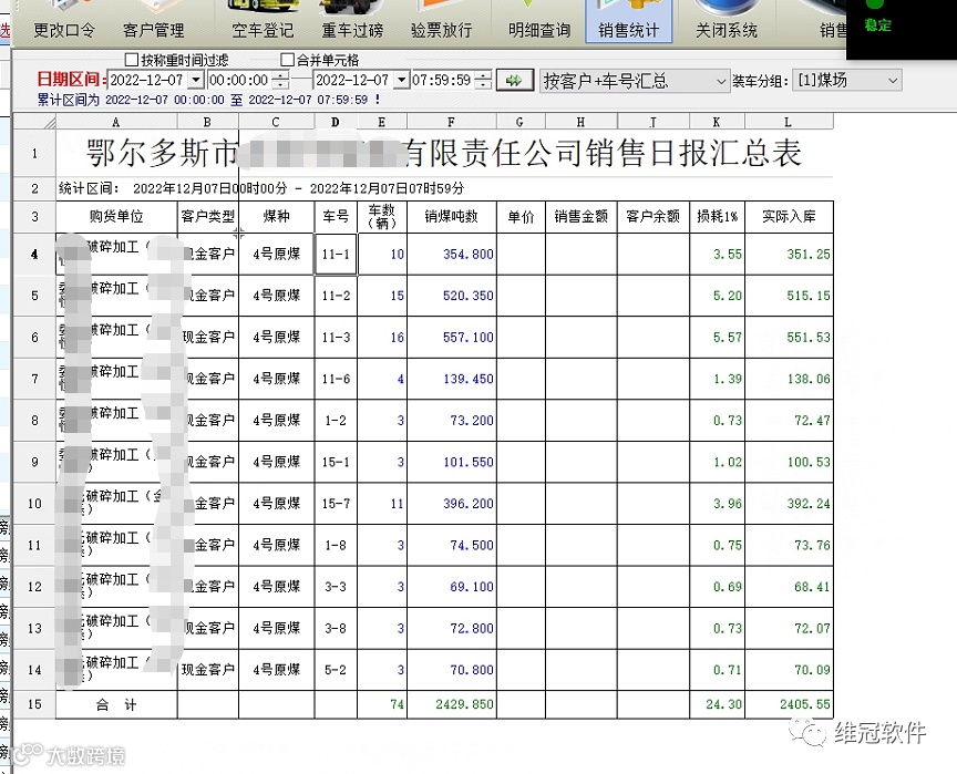 每辆车,按客户+煤种组合确认蓝牙卡数量。