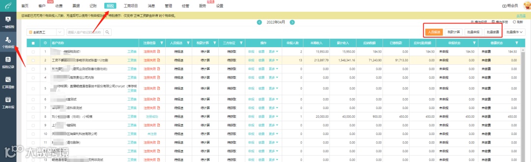点击工作台-申报-个税申报-人员报送-税款计算-批量申报-批量缴费