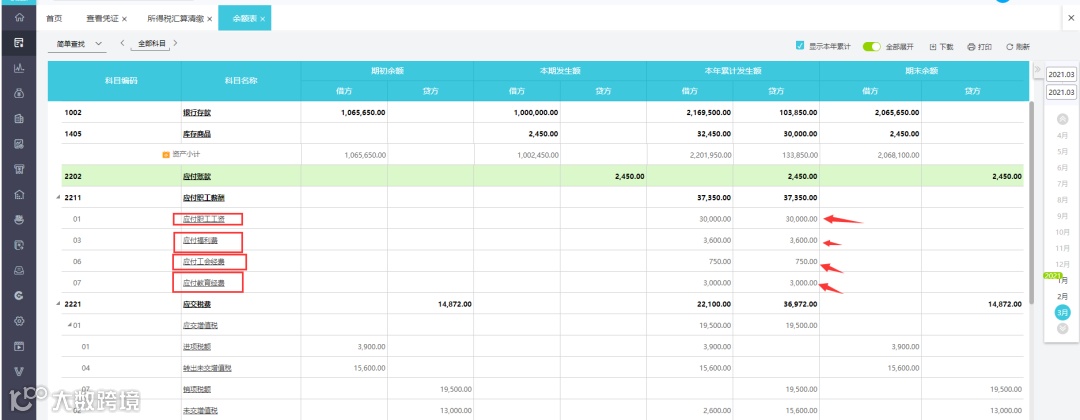 ①工资薪金支出取数参考:本期余额表中(应付职工薪酬-应付职工工资(221101)这个科目的本年累计贷方发生额)+(应付职工薪酬-应付奖金、津贴和补贴(221102)这个科目的本年累计贷方发生额)