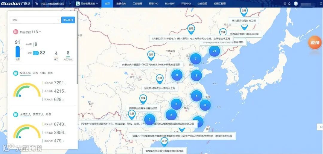 中国三冶集团有限公司与广联达科技股份有限公司于2014年达成合作。2021年4月开始应用劳务管理系统,累计上线项目112个,在册参建单位100余家,累计录入在册人员27564余人,目前在岗7043人。在原始业务中,中国三冶对下属各分公司、各分公司对下属各项目现场有多少在岗作业人员无法及时统计,统计过程中上传下达,数据缺乏时效性,且没有真实有效的数据支撑。