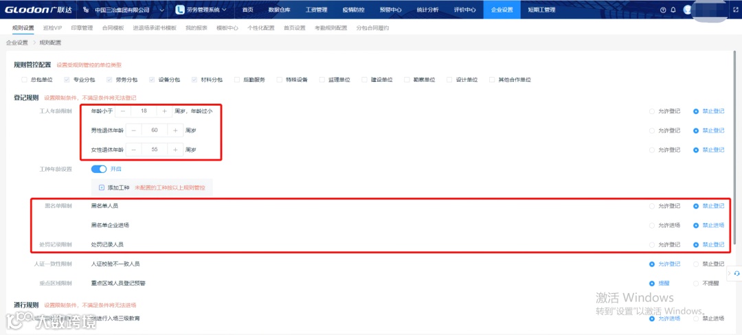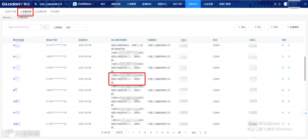 同时对于不服从项目部管理、整体考核结果差、违反合同约定、存在不良行为的分包商,集团劳务负责人直接将其设置成企业黑名单,当项目建立企业如果在企业黑名单中,劳务管理系统会给出警示,禁止给黑名单企业录入,为中国三冶后续新项目建设,规避合同履约风险。