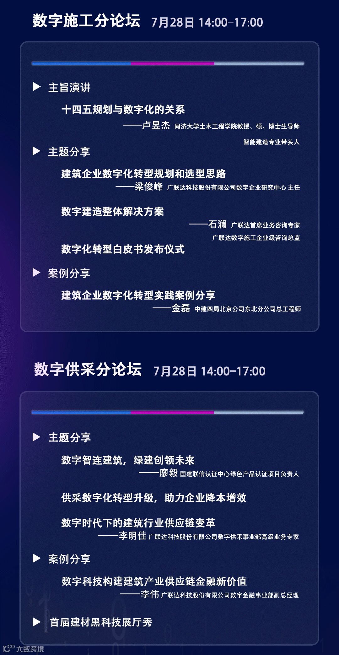 鉴于建筑产业的痛点和难点,此次中国数字建筑峰会2021将成为各方聚首的绝佳平台,消除建筑产业数字化转型之旅的所有困惑,探讨数字时代最前沿的技术趋势和行业应用,拨开迷雾,让产业未来豁然开朗。