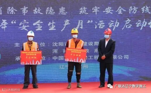 仪式接近尾声,由政府、业主、中建集团三方代表共同按下了安全生产月启动球,标志着2020年沈阳市建筑施工安全生产月活动正式启动。