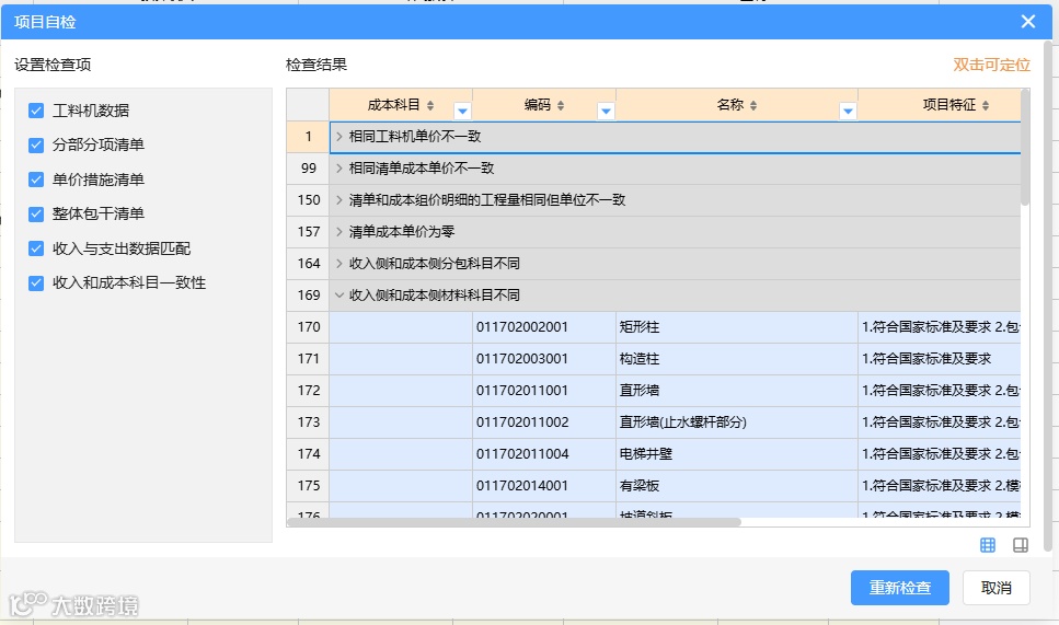 数字化方案:平台提供全链路数据溯源功能,双击任一数据即可穿透至源头清单。内置“项目自检”功能,自动排查数据一致性及漏项,极大提升审核与沟通效率。