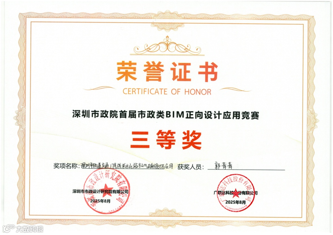 随着行业数字化转型加速,BIM正向设计的价值愈加凸显。首届深圳市政院市政类BIM正向设计应用竞赛的圆满成功,不仅树立了国产BIM软件应用的新标杆,也为市政工程领域培养了一批懂业务、懂技术的复合型人才。竞赛虽有终点,创新永无止境。未来,广联达将把握数字化浪潮,为城市基础设施建设注入更多智慧与活力。
