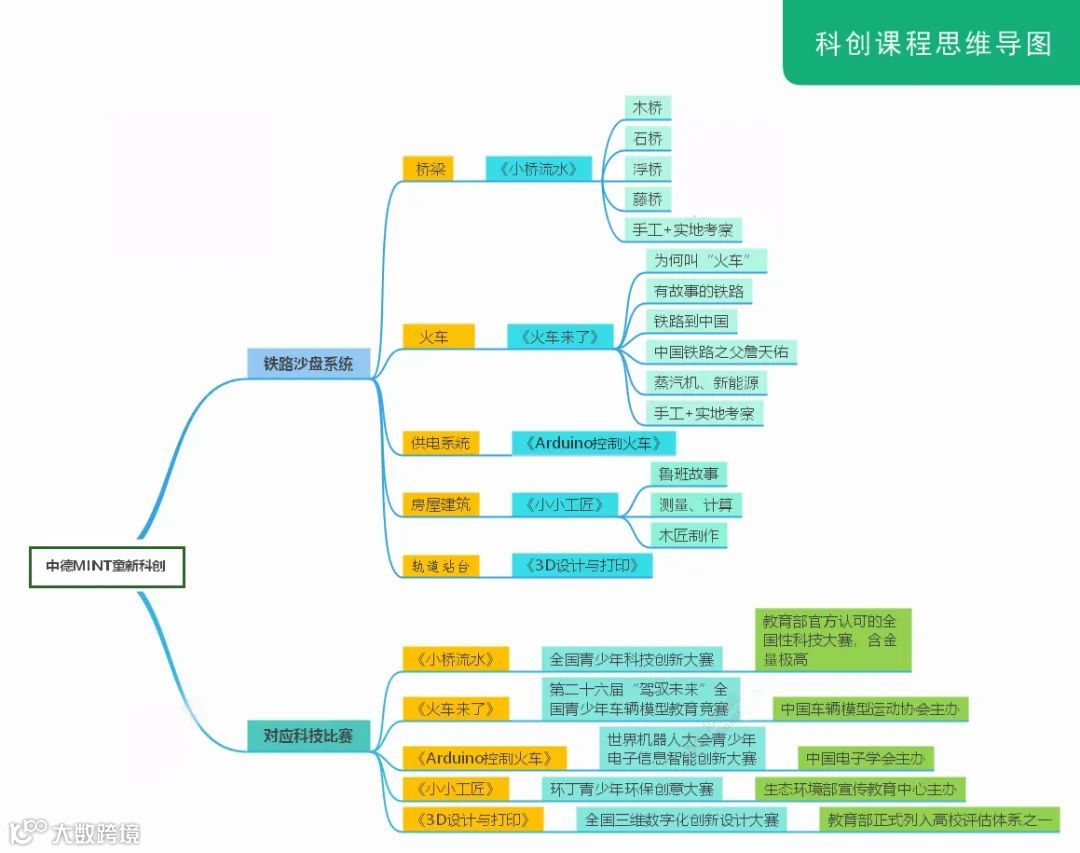 围绕桥梁(小桥流水)、火车(火车来了)、供电信号(arduino控制火车)、轨道站台(3D设计及打印)、房屋建筑物(小小工匠)的构建,形成整个铁路沙盘系统。
