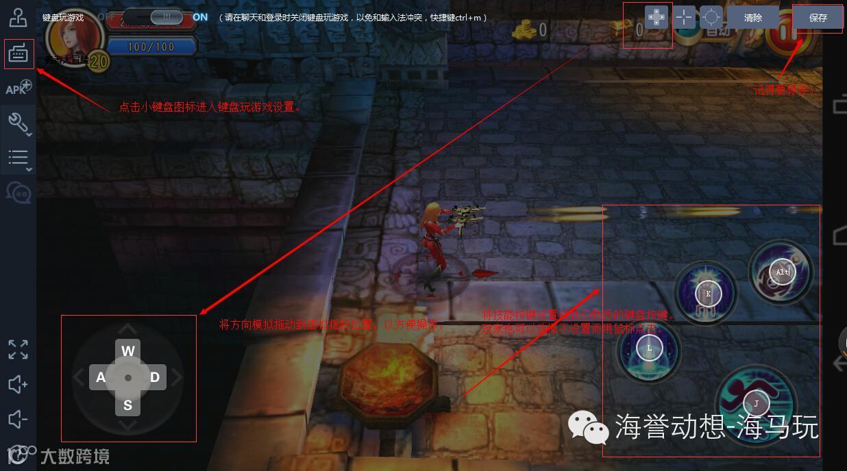 因为引导的时候功能都齐全,所以这个时候我们可以直接对操控方式进行修改,将摇杆修改为WSAD控制角色移动,右下角的技能键也可以设置成键盘上的按键,如此一来操控就简单得多了。