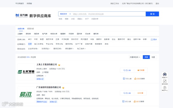 60 万+供应商资源,区域地图快速搜索。全区域全品类,快速触达供应商,提供优质供方资源信息。