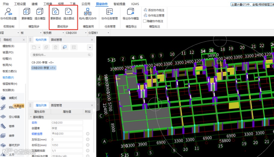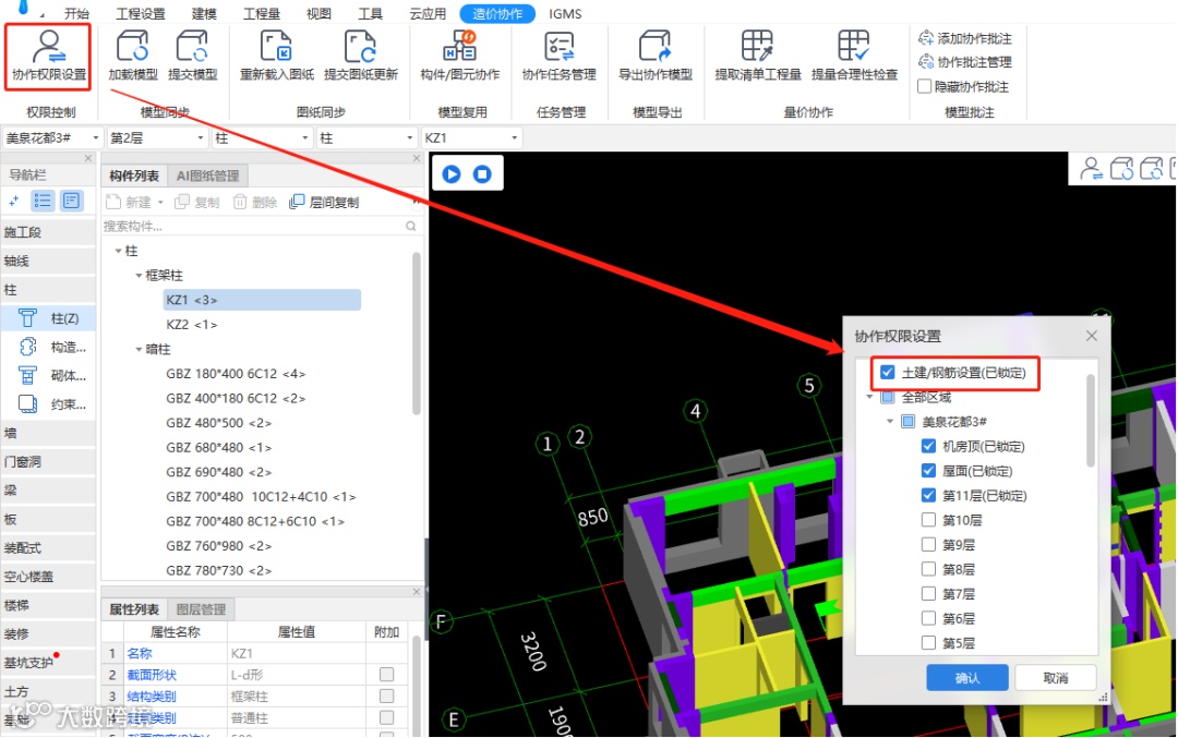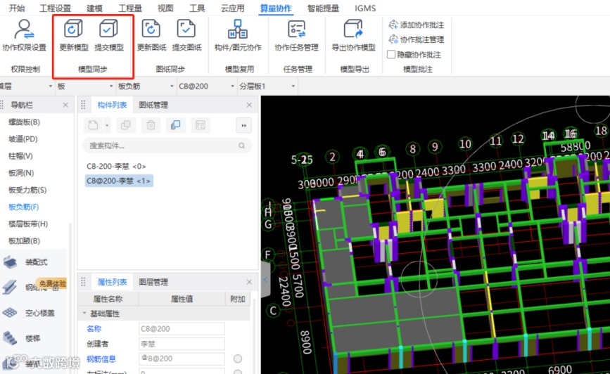 (2)支持按照楼层、轴网、构件分工协作,支持多人同时编辑同一楼层