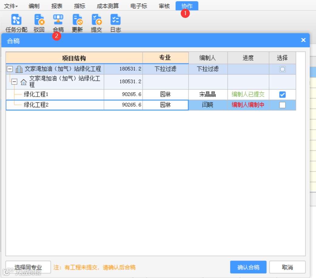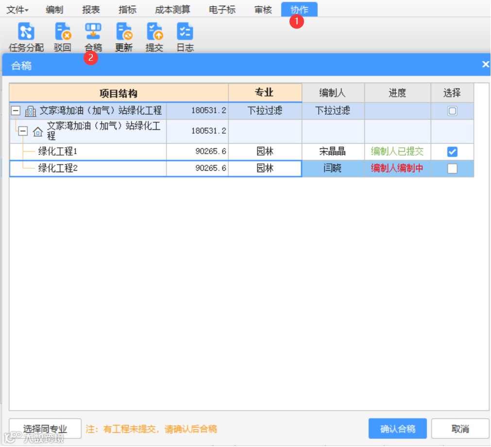 可实时关注编制过程中的情况,及时指正;并且可以通过【合稿】收回部分编制权限,分配给审核人,编制审核同时进行
