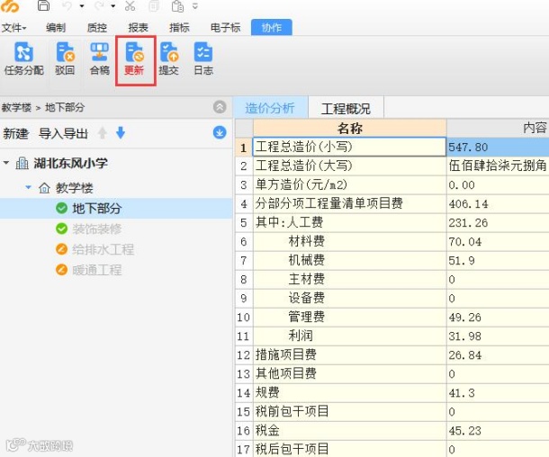 群体工程,一般会先完成一栋楼的组价,然后将组价快速复用到其他楼栋,可实时更新其他人提交的数据,用于参考