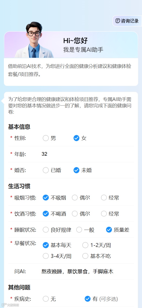 AI体检开放平台:秉持“赋能机构,服务大众”的理念,承诺“四大零门槛”——零成本试用、零风险集成、零技术负担、零效果顾虑。通过H5组件“即插即用”,无需更换现有核心系统,即可快速拥有“AI大脑”,轻松体验效率与服务的提升。