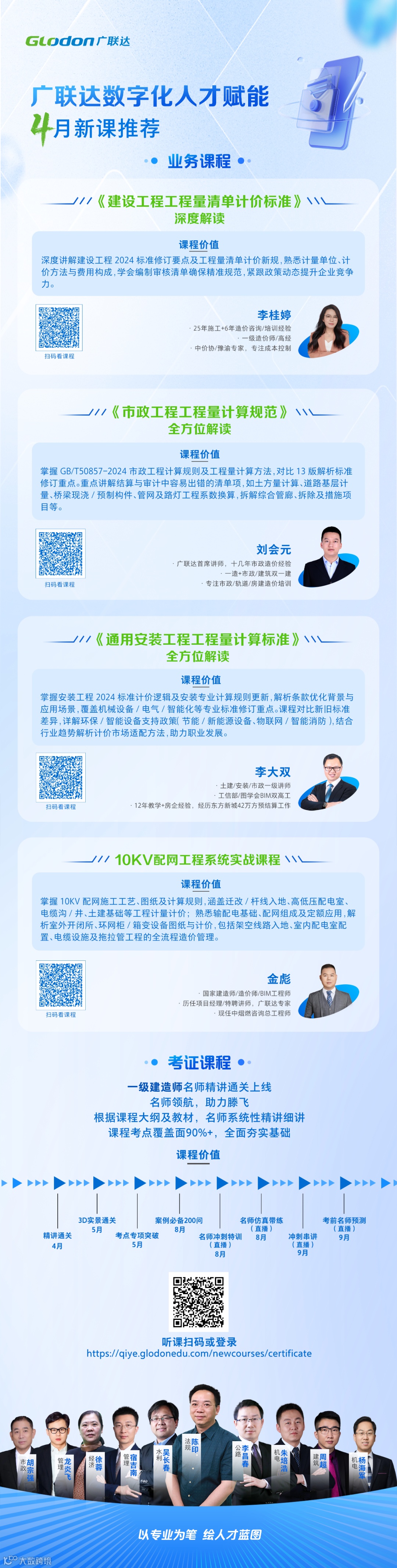 人才赋能4月新课推荐:2025新清单/10KV配网/一建证书等