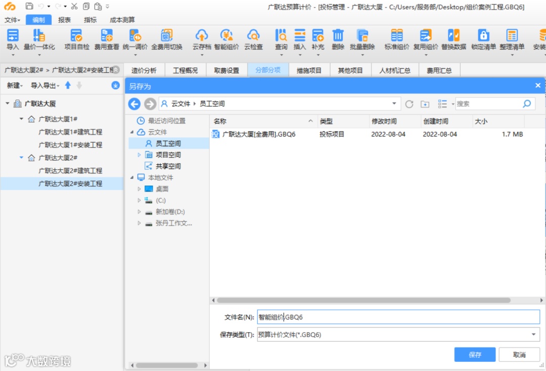 将组价方案存储到云空间
