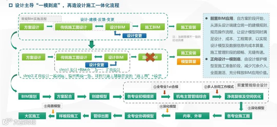 设计模型维护至落地,工作流程相应重塑,模型直接出图指导施工,实现“一模多用”、“一模到底”应用目标。