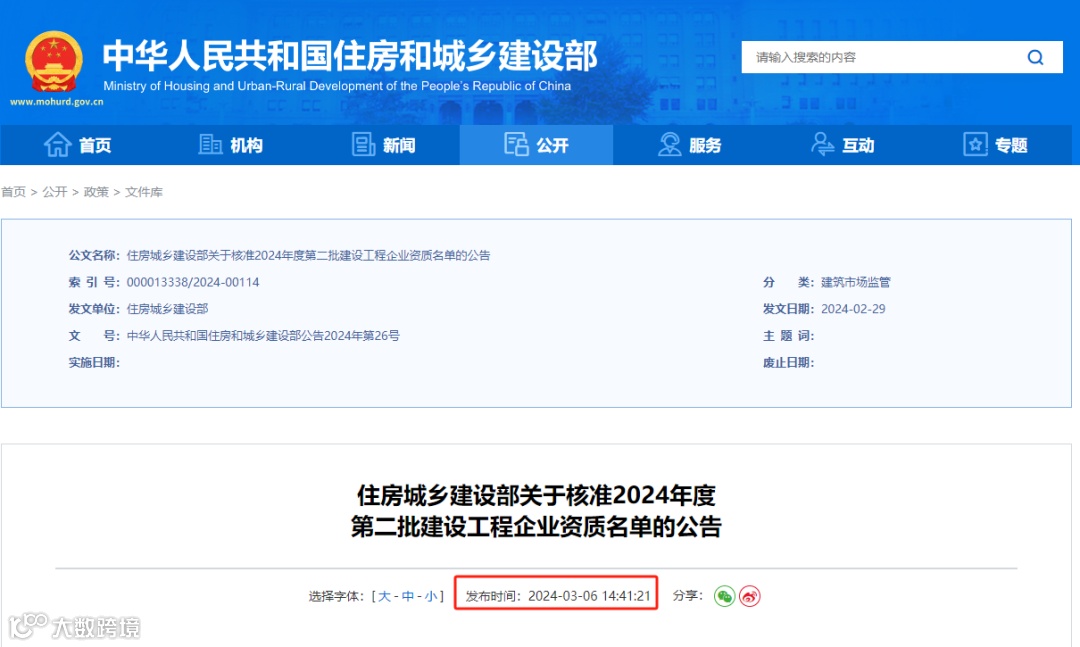 住建部发布《关于核准2024年度第二批建设工程企业资质名单的公告》,其中4家建筑企业成功升特。