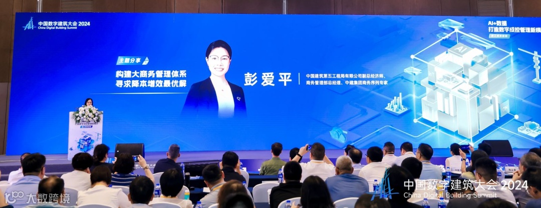 中国建筑第五工程局有限公司副总经济师兼商务管理部总经理、中建集团商务序列专家彭爱平女士,以《构建大商务管理体系,寻求降本增效最优解》为主题,详细介绍了刀刃向内,苦练内功,如何通过大商务管理体系的搭建来寻求降本增效的最优解,内容主要分为3个层面的统一。