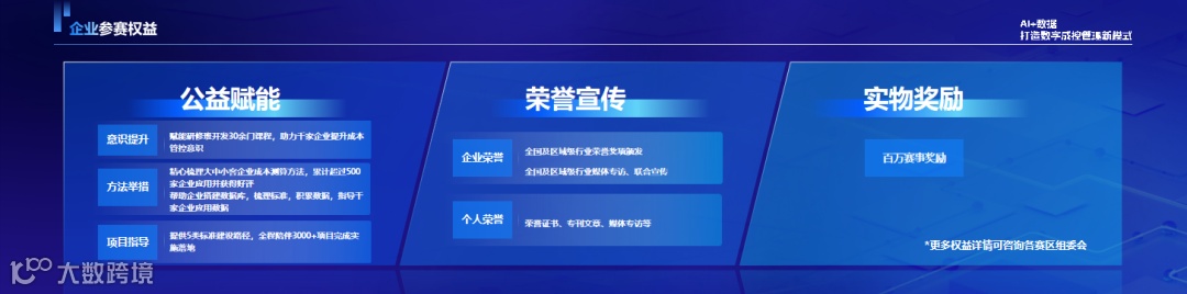在公益赋能方面,大赛组委会将提供各阶段适的业务赋能内容体系:在意识提升层面,提供30余门课程,助力千家企业提升成本管控意识;在方法举措层面,精心梳理超过500家企业验证并认可的大中小客成本测算方法、企业数据库搭建方法、数据标准梳理方法等;在项目指导层面,基于全程陪伴3000+项目的服务经验,提供5类标准建设路径,帮助项目案例完成实施落地。