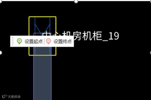 3、点击工具条中设置起点按钮,对应图元增加起点标识。上步骤同样的方式查找到对应的终点机柜,设置终点(也可先设置终点再设置起点)