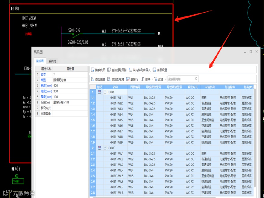 在配电房场景、常规电气算量场景内表格系统图均支持识别,触发【读系统图】功能,窗体弹出【横向系统图】+【表格系统图】,默认触发【横向系统图】,表格内可识别的信息输入到对应单元格内,且支持编辑。各类系统图一网打尽,覆盖90%+类型的系统图识别,列项无忧。