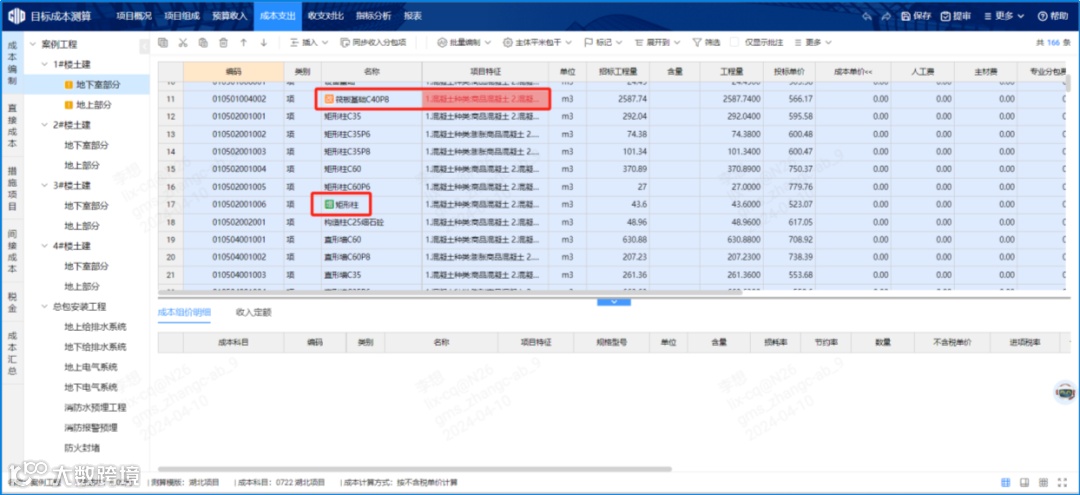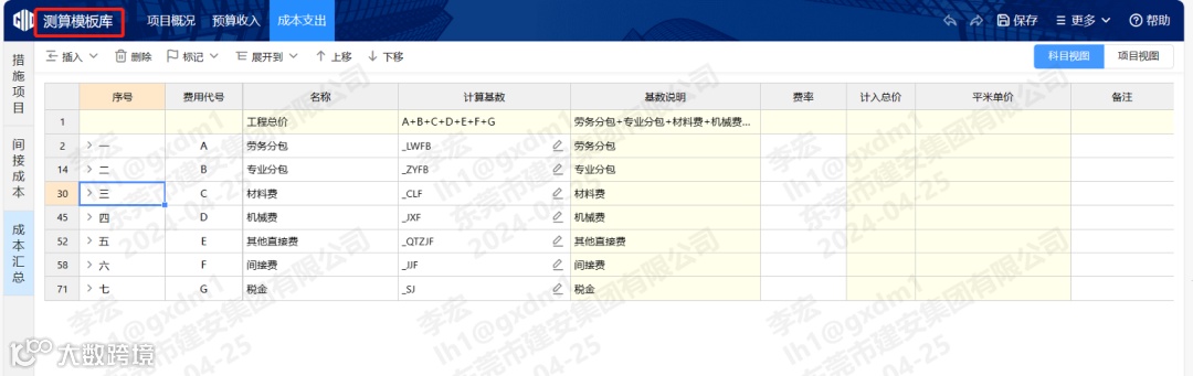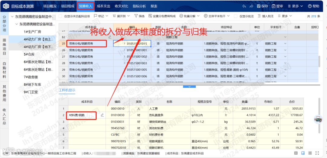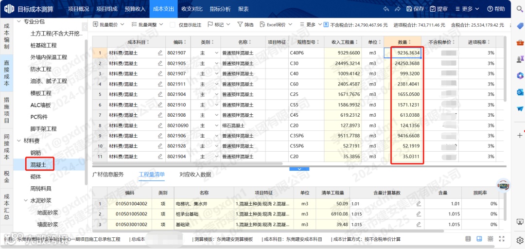3、目标成本支撑过程管控:目标成本结果较细,各成本列项、成本工程量清晰,为合约上限、分包付款上限和分包结算上限提供管控抓手;