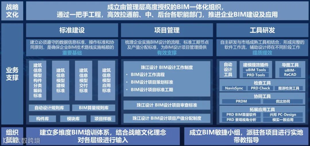 成建制BIM设计体系的建设与全面推广,是珠江设计实现数字化转型的关键。技术体系、项目管理体系、企业管理体系的建设相辅相成,在企业的层面以可持续的方式实现良性循环。