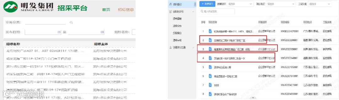 目前明发招采平台所有总包项目都由市场化计价平台完成招投清,清单描述详尽且贴合实际,规避扯皮现象后,减少了很多签证变更的费用,实现了成本的前置管控,招标结果贴合最终结算价