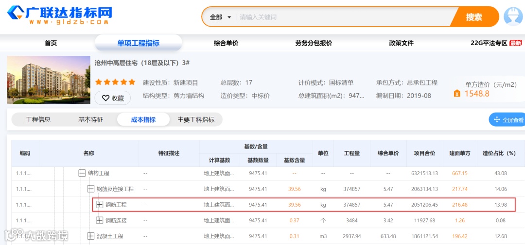 通过指标网单项工程指标,快速获取外省其他地区类似业态的指标数据做参考,快速对标出结果