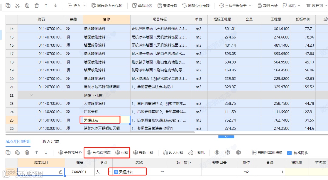 2、经过内部验证后,将企业定额部署在软件中,测算时查询调用。