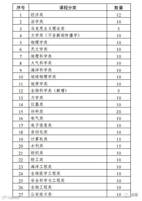 1.认定范围包括经济类、法学类、马克思主义理论类、文学类(本次不含新闻传播学类)、物理学类、天文学类、地理科学类、大气科学类、海洋科学类、地球物理学类、地质学类、力学类、仪器类、材料类、电气类、电子信息类、自动化类、计算机类、水利类、纺织类、轻工类、海洋工程类、生物医学工程类、安全科学与工程类、生物工程类、公安技术类、管理类、艺术学类。