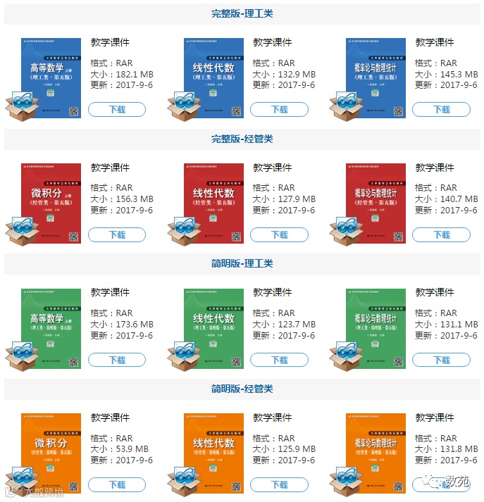 献礼1——多媒体教学系统:大学数学多媒体教学系统是一套大型的集成性、交互式和信息资源立体化的教学系统,采用多媒体动画软件平台开发,并且兼容了PPT课件系统,其中设计了多媒体教案、习题详解、综合训练、实验教学、系统导航及扩展连接等功能模块。课程列表如下: