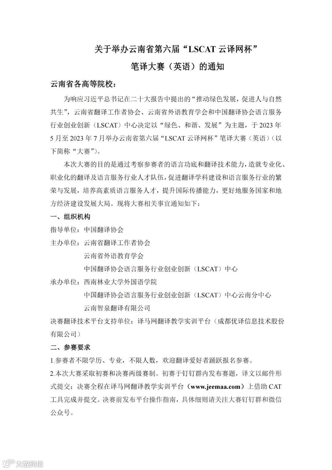 译马网为云南省第六届“LSCAT云译网杯”笔译大赛(英语)提供平台支持。