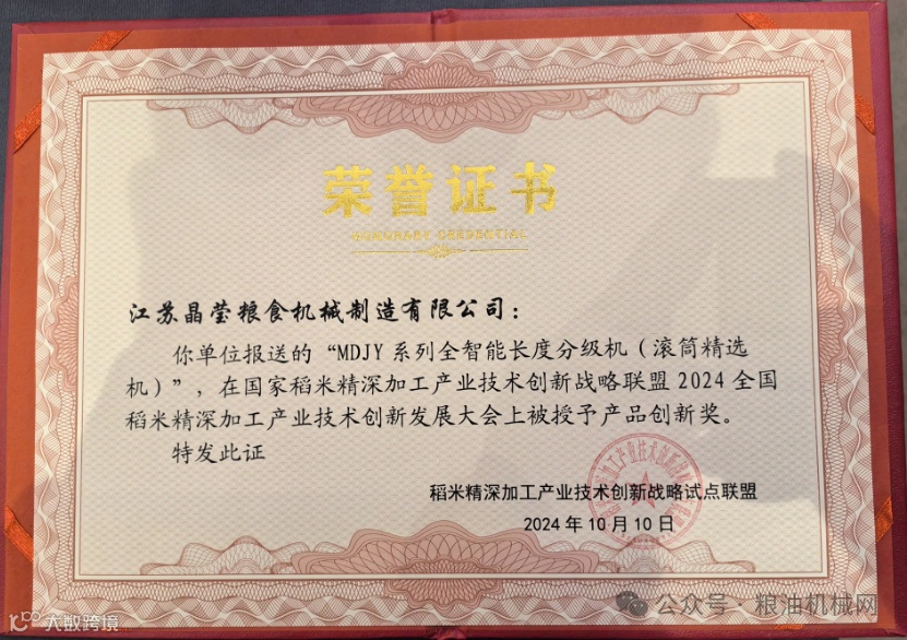 江苏晶莹粮机荣获