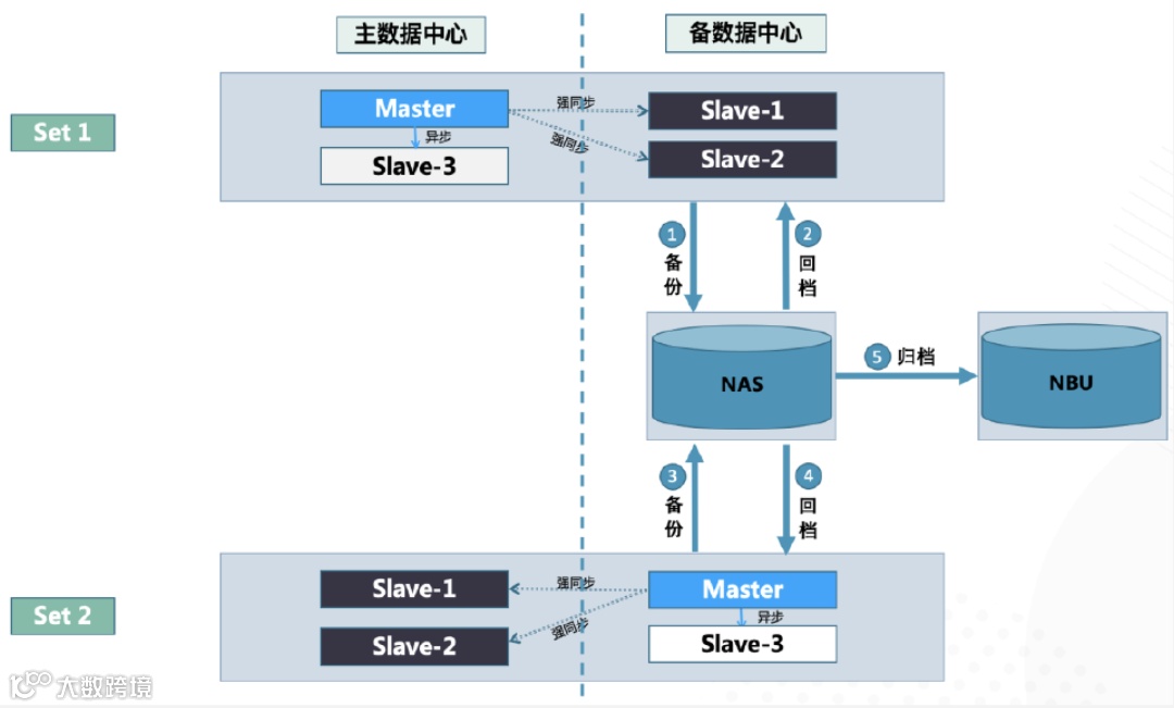 备份以set为单位,一主多备只有一个备库成为备份节点进而完成备份。