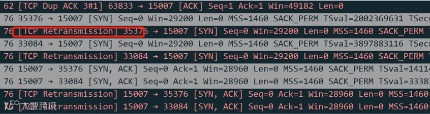 6、于是,登录LVS服务器进行网络抓包,并让网络工程师分析。查看对应负载端口抓包信息,查看到大量重传记录。