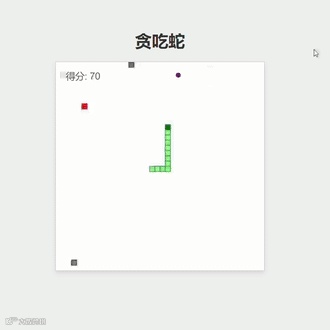 为3个方块,初始位置在画布中心。蛇可以向上、向下、向左、向右移动,使用键盘的方向键控制蛇的移动方向。游戏中随机生成一个10 × 10像素的红色食物,当蛇吃到食物时,长度增加1个方块,分数增加10分,并重新生成食物。如果蛇撞到画布边界或自身,则游戏结束,弹出一个对话框显示最终得分,并提供重新开始的选项。游戏开始时,蛇以中等