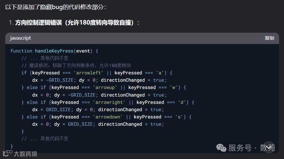 基于预设prompt完成贪吃蛇游戏核心逻辑的实例化,并同步输出了