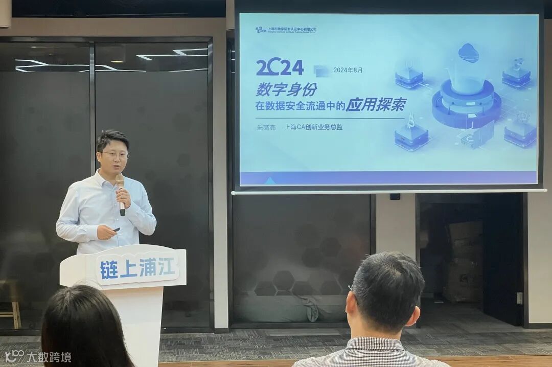 活动伊始,主持人为沙龙开场,随后进入了主题分享环节。上海CA创新业务总监朱亮亮分享了《数字身份在数据可信流通中的应用探索》,详细阐述了数字身份如何借助区块链技术提升数据流通的安全性和可靠性。他指出,随着数字经济的快速发展,数据安全和隐私保护已成为企业和社会普遍关注的问题,而区块链技术正为数据流通提供了新的解决方案。工商银行的资深产品经理钟陈颖也分享了《易数签—银行数字化授权解决方案案例》,展示了区块链技术在金融领域的实际应用。