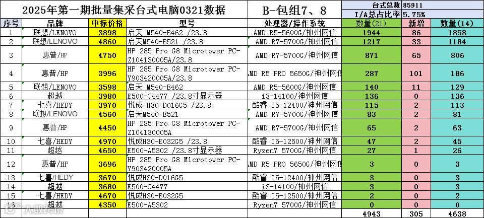 以上数据均仅限批量集采,仅供参考(不含统框采(点击查看部分数据),线下,统采,邀标等)