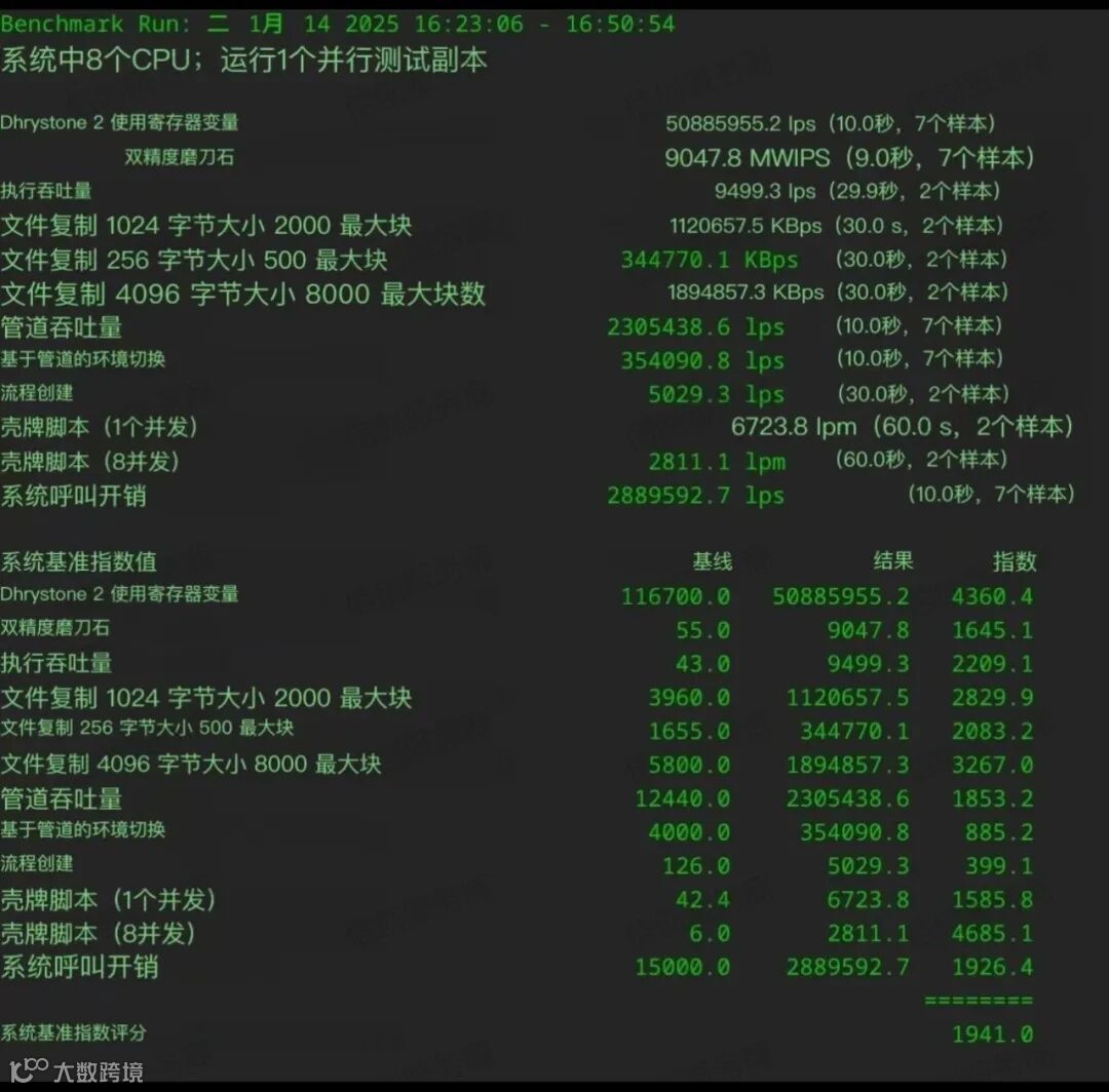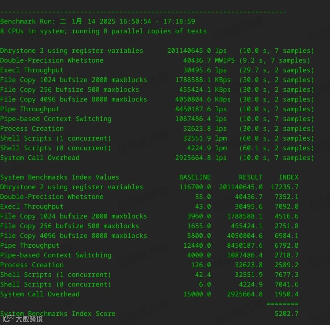 Unixbench的主要测试项目有:系统调用、读写、进程、图形化测试、2D、3D、管道、运算、C库等系统基准性能提供测试数据。