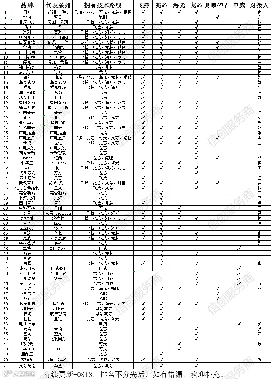 【71个整机品牌】一图汇总-信创/国产化拥有芯片详情-0813