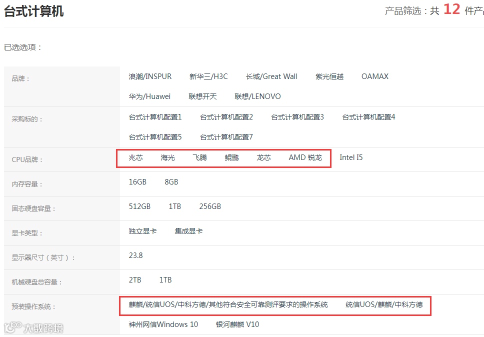 框采产品展示售卖/批量集采提报计划,芯片品牌/品牌/操作系统等,要求符合安全可靠测评要求