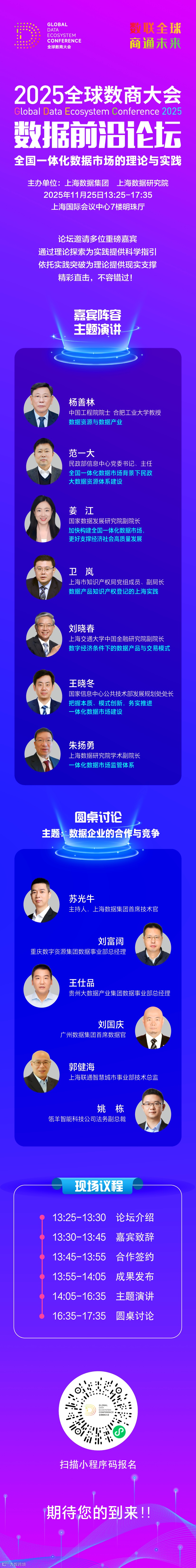 国家数据发展研究院、上海市数据局等单位负责同志将现场解读国家及上海数据市场建设战略重心、政策导向;