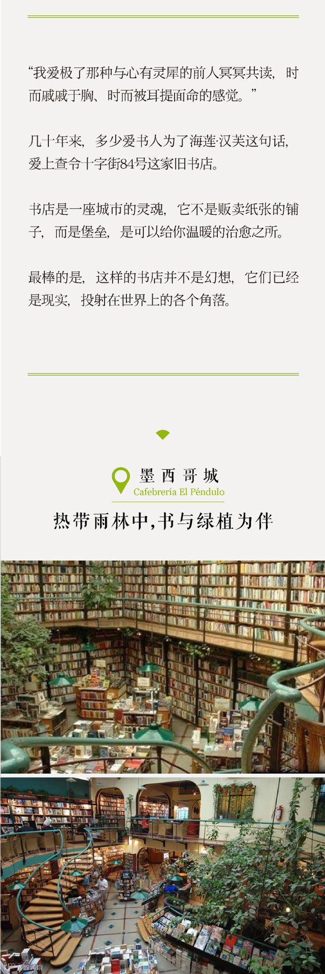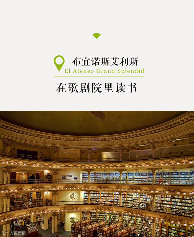 上世纪初的歌剧院被改成电影院,现在又变成堆满书籍与杂志的恢弘书店。华丽的雕刻和红色的幕布还在,剧院包厢都还留着,可以让客人坐在里面舒适阅读,置身于El Ateneo Grand Splendid,你就像在剧院看戏一般产生与世隔绝的奇妙感觉。