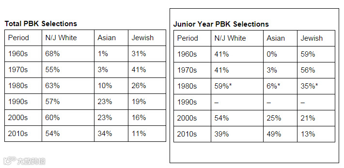犹太裔与亚裔人口比例相近,亚裔入围人数却比犹太裔多四倍多。而犹太裔的6%,已经和他们在人口中的比例相同了。