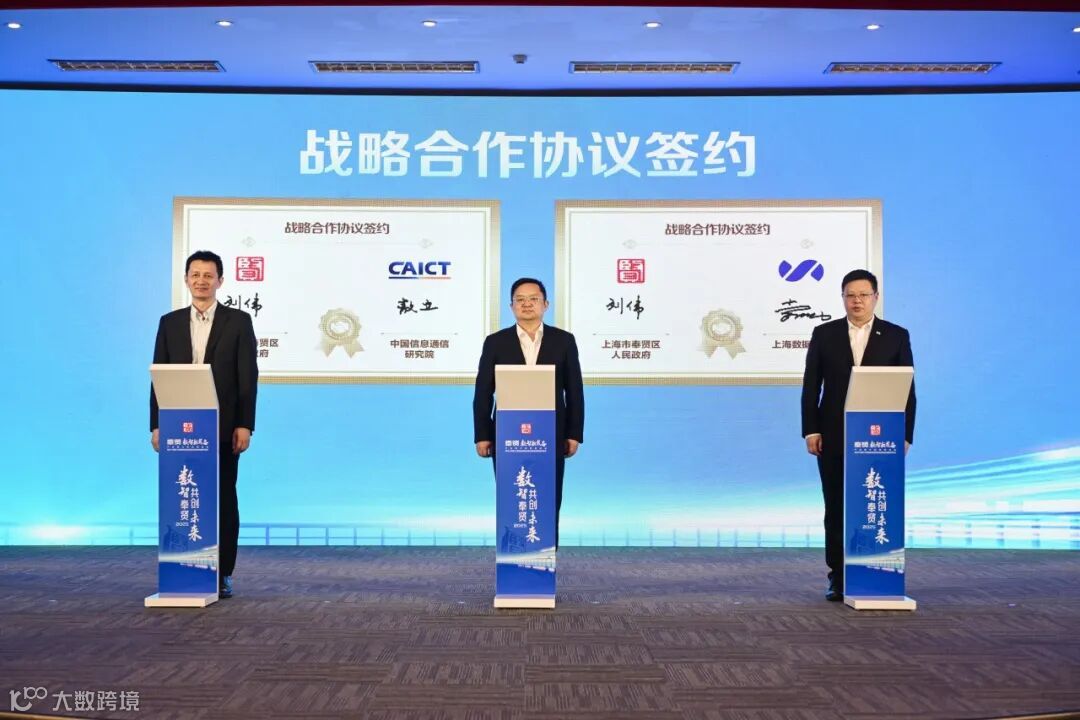 中国信通院、数据集团分别与奉贤区签订战略合作协议。奉贤区委常委、副区长刘伟和数据集团副总裁李小山代表双方签署战略合作协议。