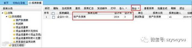 6、点击文件–保存,即可将报表保存在“报表数据”界面,下次可以直接打开对应月份的财务报表,也可以通过“导出”功能将报表导出excel文件保存在本地计算机中。