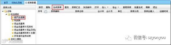 3、打开T-UFO–报表数据,选择需要制作的报表,如资产负债表,点击“生成报表”按钮,
